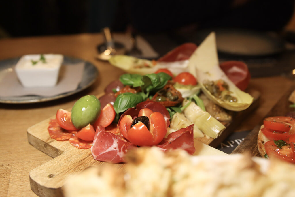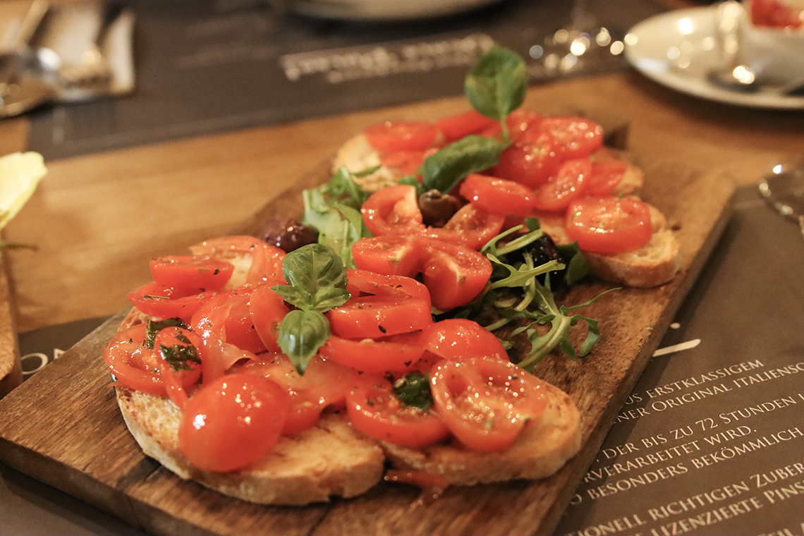 Kommen wir nun endlich zum kulinarischen Teil des Abends. Auf Empfehlung des Inhabers starten wir mit „Bruschetta Singola“ und „Antipasti Piccolo“. Das Brot für die Bruschetta wird selbst gebacken – und ich gebe zu: So eine schmackhafte Bruschetta habe ich selten gegessen. Keine Tomate rutscht herunter, die Brotscheiben haben die perfekte Dicke, und die Qualität der Zutaten schmeckt man bei jedem Bissen.
