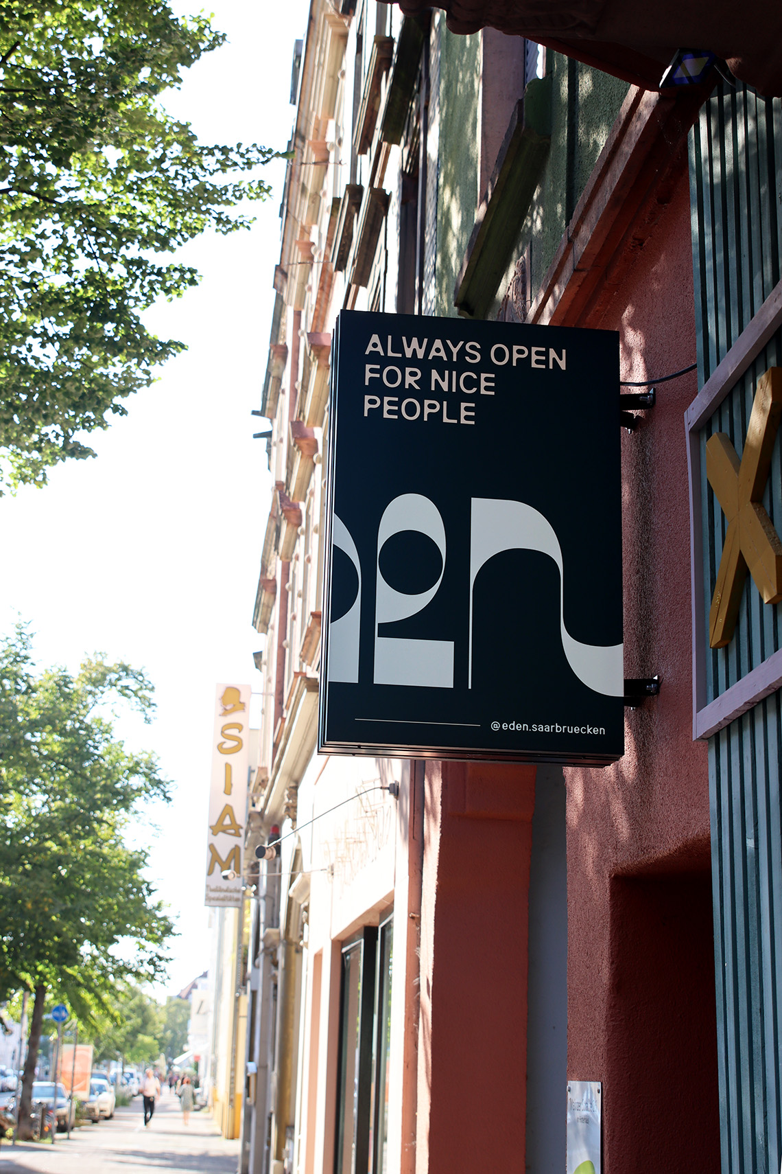 Always open for nice people“ – also „Immer offen für nette Leute“ – steht prominent auf dem Schild des Restaurants „Eden“, gleich neben dem Namen. Das fällt sofort ins Auge, wenn man die Mainzer Straße in Saarbrücken entlanggeht. Diesen Grundsatz haben sich die beiden Chefs des „Eden“, Florian Wätzmann und Rochan Nanthakumar, auf die Fahne geschrieben. Sie wollten mit der Eröffnung ihres ersten gemeinsamen Restaurants einen Ort für alle schaffen, die es gut mit ihnen meinen.