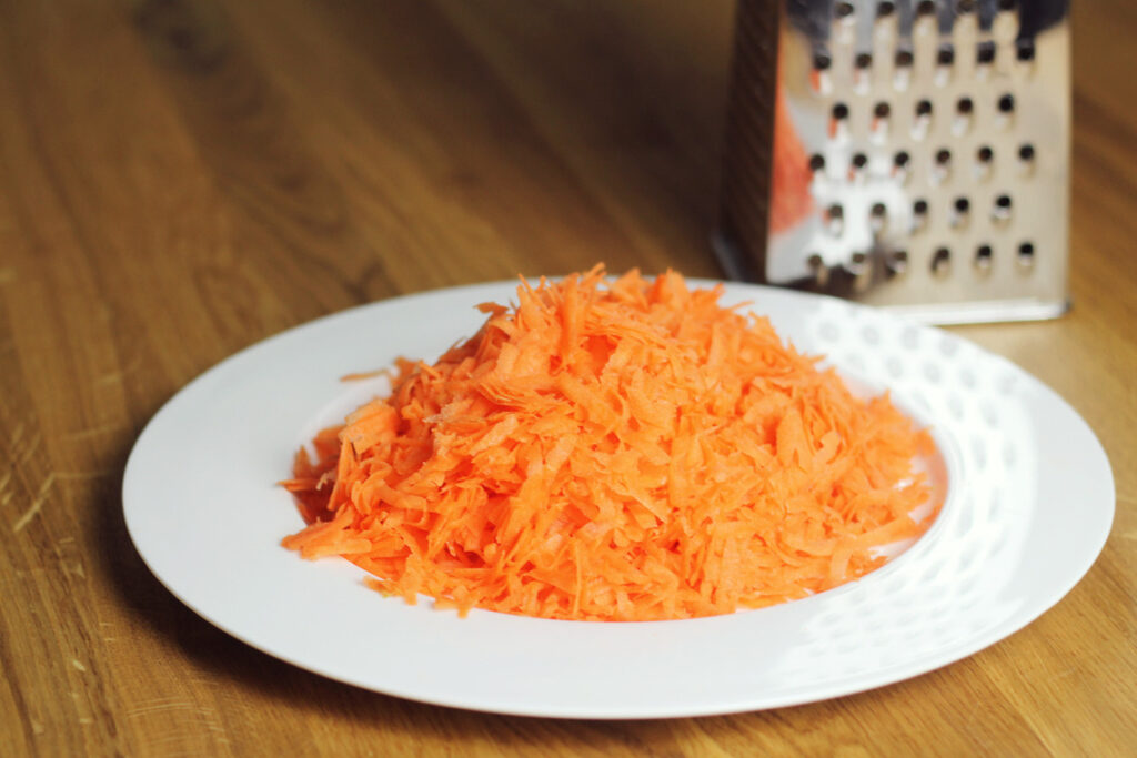 4. In der Zwischenzeit könnt Ihr die Karotten schälen und fein reiben.
