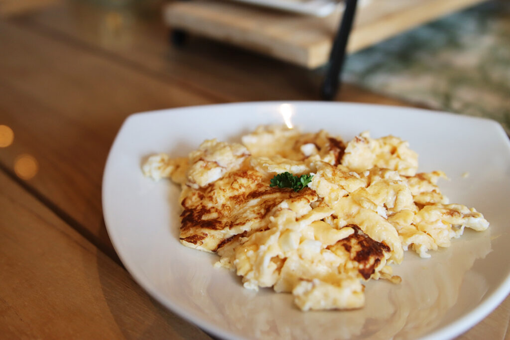 Der Küchenabschnittsgefährte bestellt sich das Frühstück namens „Filloreta“, bestehend aus einer gemischten Wurst- und Käseplatte, Schwarzwälder Schinken und einer Eierspeise nach Wahl. Er entscheidet sich für Rührei – auch einer meiner absoluten Favoriten hier. Mama Köstlich musste bei unserem letzten Ausflug hierher darum bangen, dass sie selbst auch noch etwas von ihrem bestellten Rührei abbekommt.