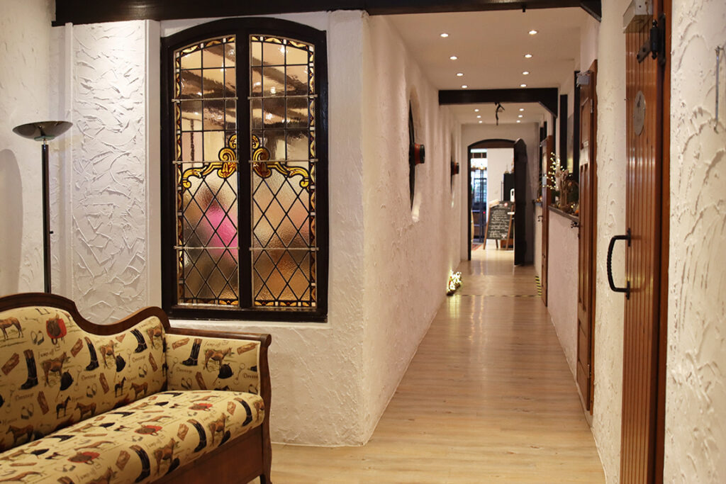 So kommen wir an einem Sonntagvormittag auf dem großen Parkplatz des Café-Bistrorante im Merziger Stadtteil Ballern an und betreten das Lokal durch eine rustikale Holztür. Sofort wird klar: Hier dreht sich alles ums Pferd. Denn um ins eigentliche Lokal zu gelangen, kommt man an einem gemütlichen Sofa und den Toiletten vorbei. Letztere sind nicht wie üblich gekennzeichnet, sondern mit „Hengst“ und „Stute“.