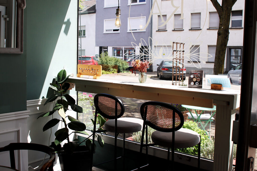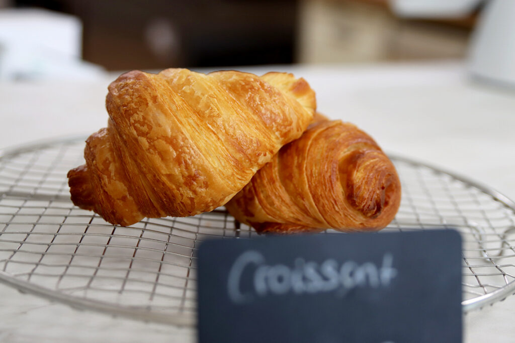 Das ist auf jeden Fall gelungen. Als wir die Patisserie betreten, fühlen wir uns sofort gut aufgehoben. Ein bisschen so, als würde man durch eine Art Portal mitten in Frankreich in einer Patisserie landen. Ganz dezent läuft im Hintergrund französische Kaffeehaus-Musik und rundet das Konzept perfekt ab. Was würde zu dieser Atmosphäre besser passen als hausgemachte Croissants und ein Kaffee?
