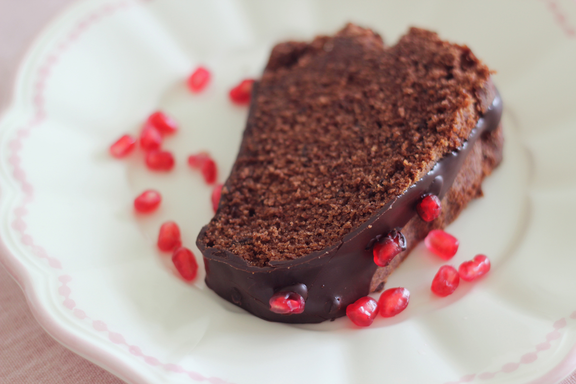 - Sobald der Kuchen abgekühlt ist könnt Ihr ihn noch mit Kuvertüre und ein paar Granatapfelkernen verzieren.