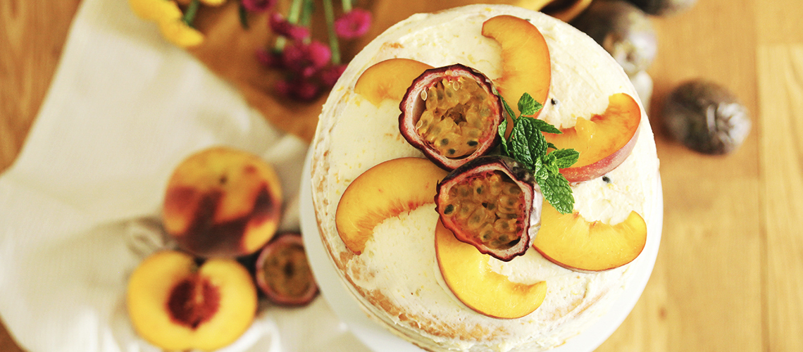 Pfirsich-Passionsfrucht-Torte zum Bloggeburtstag