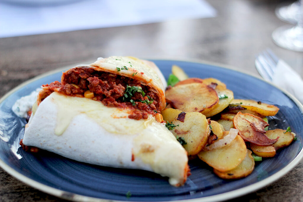 Beim Blick auf die Karte der „Mühlenwirtschaft“ werden wir sofort neugierig, denn Frederik Theis hat uns bereits vorab erklärt, dass hier regionale Produkte möglichst modern im Streetfood-Style verpackt werden. Beispielsweise gibt es eine Räucherforelle des „Forellengut Rosengarten“ in Trassem in einem Wrap oder einen Wildschwein-Burrito. Dem Inhaber war es wichtig, dass die Speisekarte möglichst einzigartig ist. „Um Regionales möglichst sexy zu machen, muss man mit der Zeit gehen“, sagt er. Wir finden, das ist der „Maimühle“ wirklich sehr gut gelungen. Entsprechend ist die „Maimühle“ Slow Food-Partner und Genusspartner des Saarlandes. Dort werden nicht nur viele Weine regionaler Winzer ausgeschenkt, Theis unterstützt generell regionale Partner und kleine Produzenten im Umkreis. Beim Genuss-Gastwirt-Wettbewerb landete er bereits zweimal auf dem zweiten Platz.