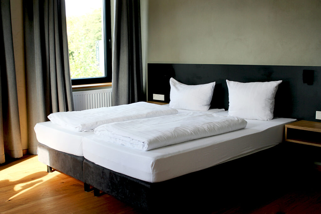 Anfangs legte man daher eher Wert auf eine gute Bewirtung von Tagesgästen, als darauf, sich als Hotel präsentieren zu wollen. Zimmer gab es zwar damals schon, aber damit wollte der Inhaber keine Werbung machen und ließ nur ungern Gäste dort übernachten. Die wenigen Übernachtungsgäste, die es damals in der „Maimühle“ gab, wurden aufgrund der Verhältnisse auch nur sehr selten zu Wiederholungstätern. Ganz anders heute. Mittlerweile sind alle zehn Zimmer neu renoviert und super großzügig geschnitten. Bei der Zimmergestaltung legte Theis großen Wert auf hochwertige Materialien. So finden sich in den Zimmern tolle Holzböden und nachhaltige Lehmwände. Zwar mit weniger Dekoration, aber in den Bädern steht dafür tolle Naturkosmetik von „Stop the water while using me!“ zur Verfügung – die im Übrigen dank der großen Aufschrift auf Duschgel oder Shampoo wirklich dazu anregt, das Wasser beim Duschen öfter mal auszuschalten. Manch einer mag skeptisch sein, weil sich die „Maimühle“ direkt neben dem Bahnhof Perl befindet. Allerdings ist diese Strecke wirklich nicht hoch frequentiert, und die Züge enden auch dort. Schnelle Züge, die geräuschvoll vorbeirauschen, gibt es daher nicht. Die Gäste der „Maimühle“ können seelenruhig schlafen und werden nicht gestört.